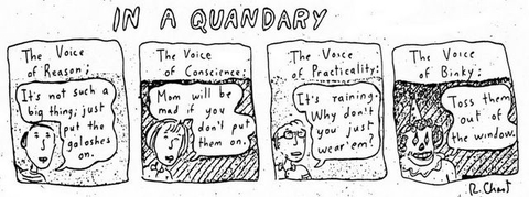 People like you and me are in the same situation, except our potentially conflicting voices are within one head, not two.